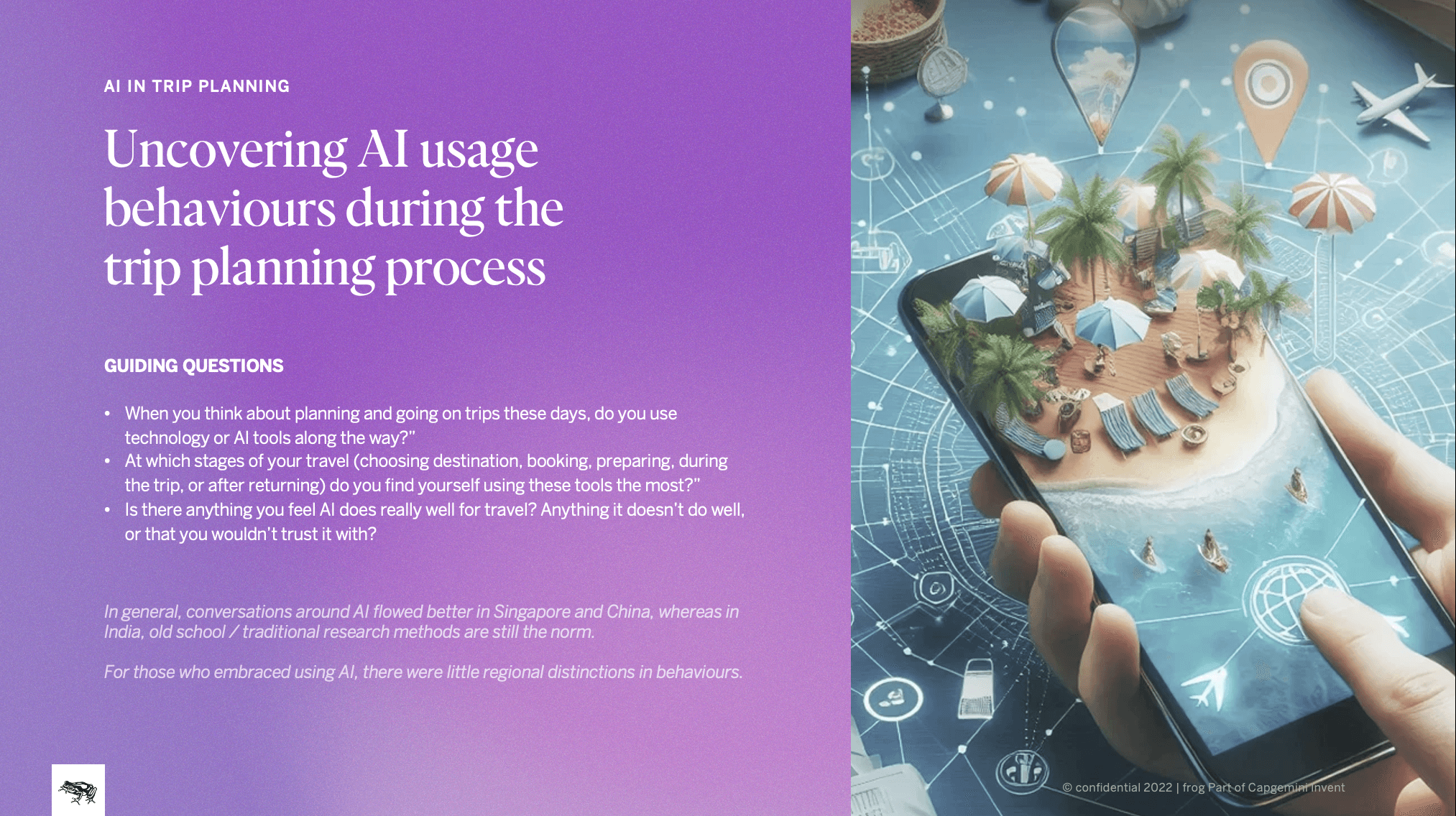 Conversations around AI flowed better in Singapore and China, whereas in India, old school / traditional research methods are still the norm.
