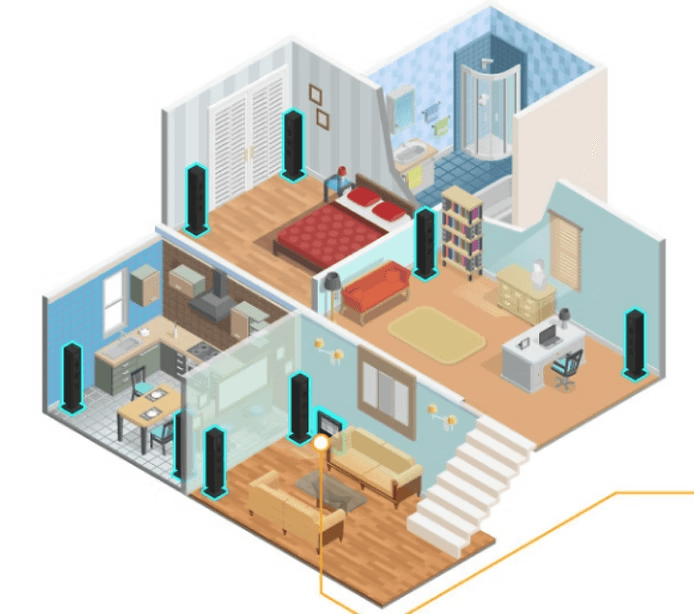 can visibly see each amplifier sitting in each room